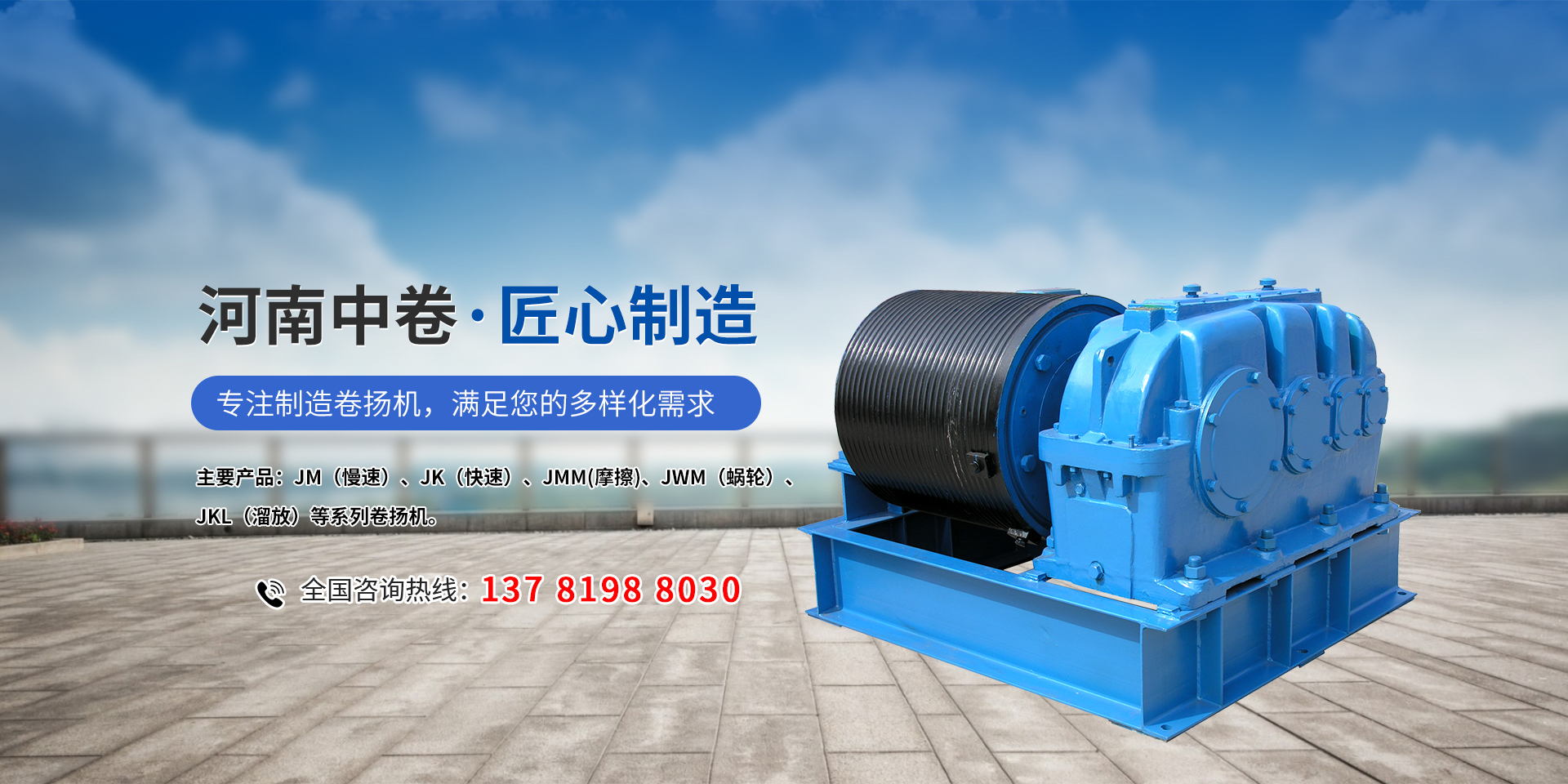 公司主要產(chǎn)品:JM(慢速)、JK(快速),JMM(摩擦),JWM(蝸輪),JKL(溜放)等系列卷揚機,并承接各種非標卷揚機設(shè)計、制造。
